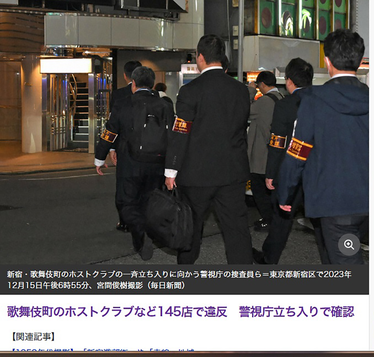 警視庁保安課は19日、東京・歌舞伎町(新宿区)のホストクラブなどを対象として15日夜に実施した一斉立ち入りの結果を公表した。対象としたホストクラブやコンセプトカフェ計347店のうち202店を調査し、値段を明示しないで酒類を販売したり、無許可で営業したりするなどの風営法違反が145店で確認された。