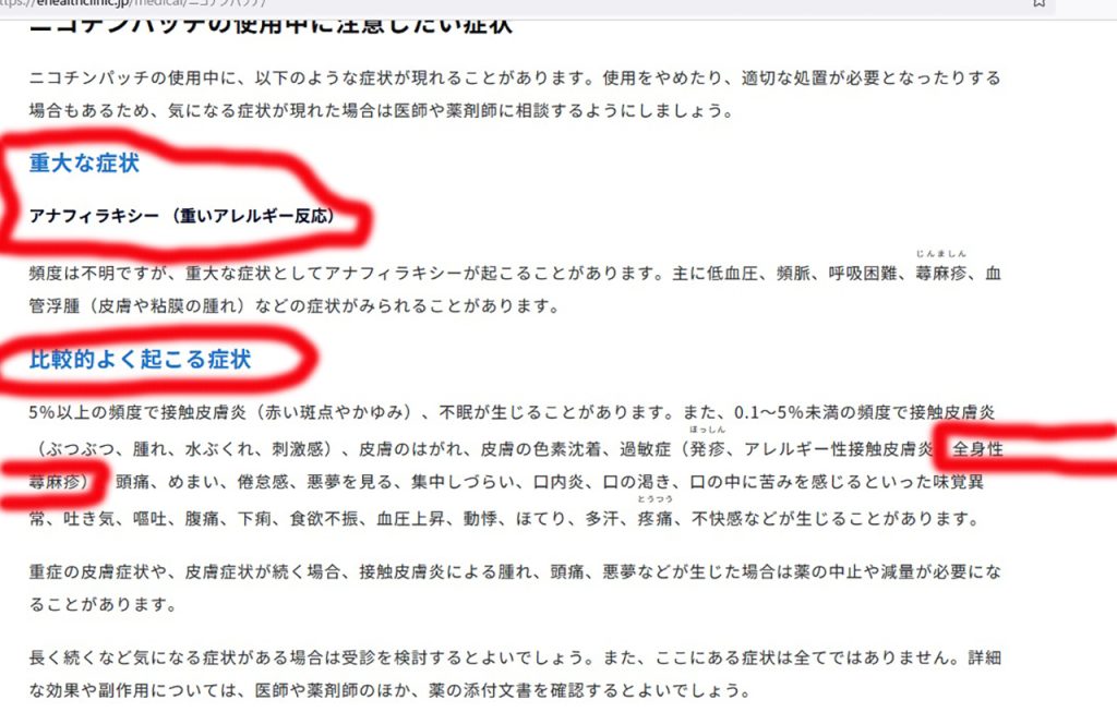 基本的に確かによく見ると、副作用に全身蕁麻疹やアナフィラキシ―とかかれているのです(;^_^A