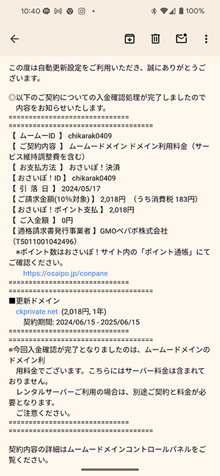 WEBはドメインがないと、ですからねカメラの写真やこのWEBにも使うし大事です✴ 機材 X Facebook はてブ LINE コピー 2024.06.23 ドメイン1年に一回の更新ですが、だいぶこのドメインも歴史が出来ましたホント大事なWEBでありドメイン様様です☆