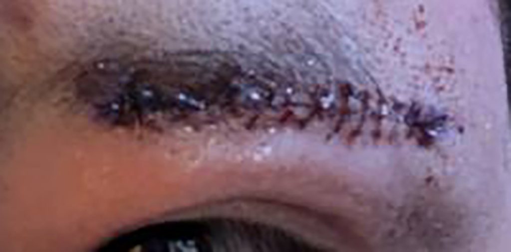 術後の翌日は腫れもそうですが糸でギザギザですが