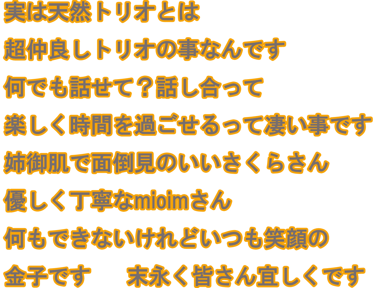ラストは天然トリオという感じで仲良しトリオです☆僕含むmioimさん、さくらさんですね✴