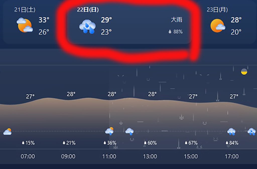 天気予報が今日の午前中から急に変わって