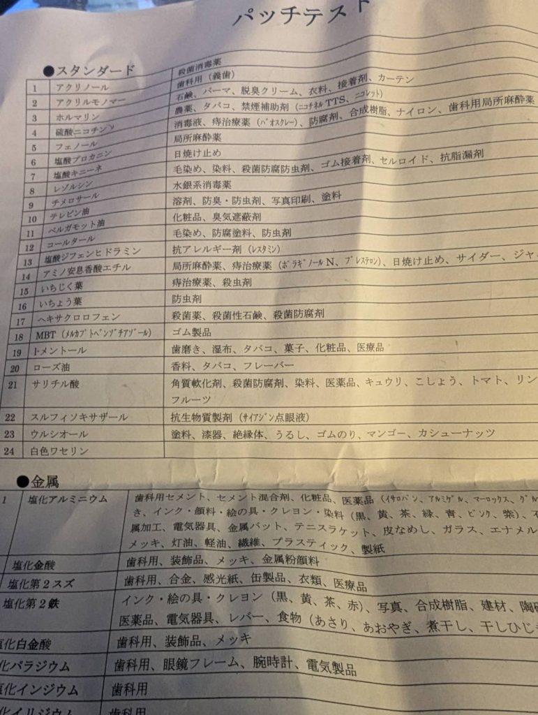 パッチテストは物によって