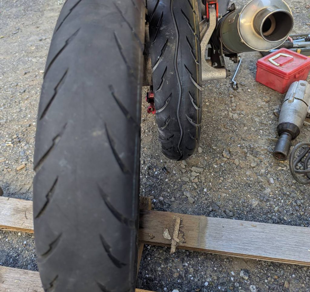 退院して翌日にやってた自転車のパンク修理とバイクのタイヤ交換などタイヤツルッツルッ笑