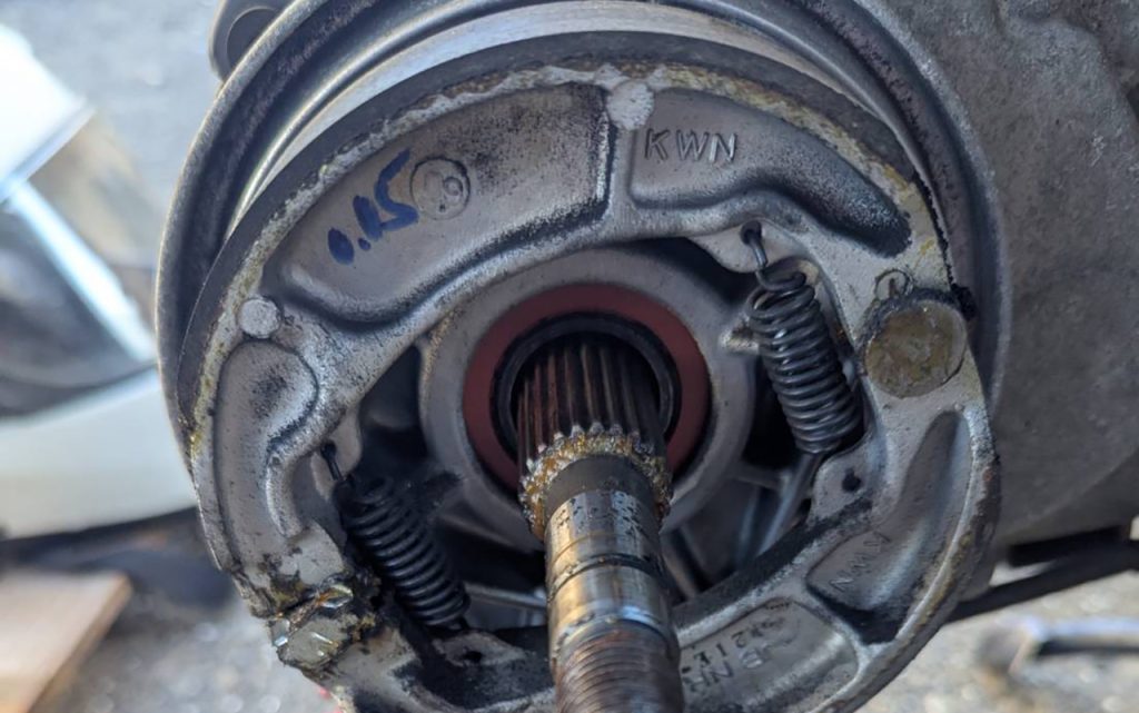 昼ぐらいからやって夕方過ぎまでかかってしまって(;^^A バイクの方が タイヤと一緒にウェイトローラープーリーフェイス、ベルト ドラムはあったので交換せずに 以外にもフロントのパッドも1万キロのってる割には、ほぼ減ってなかったので こちらも交換せず メインタイヤは新車で買ってから一回も好感してないからか? リムからエアー漏れしていたので(;^^A