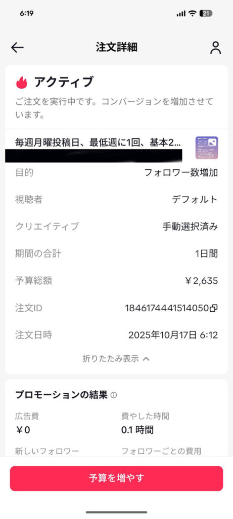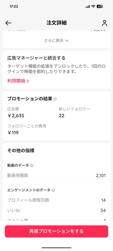 同じ投稿にフォロワーの数の増加で2635円払ったのです