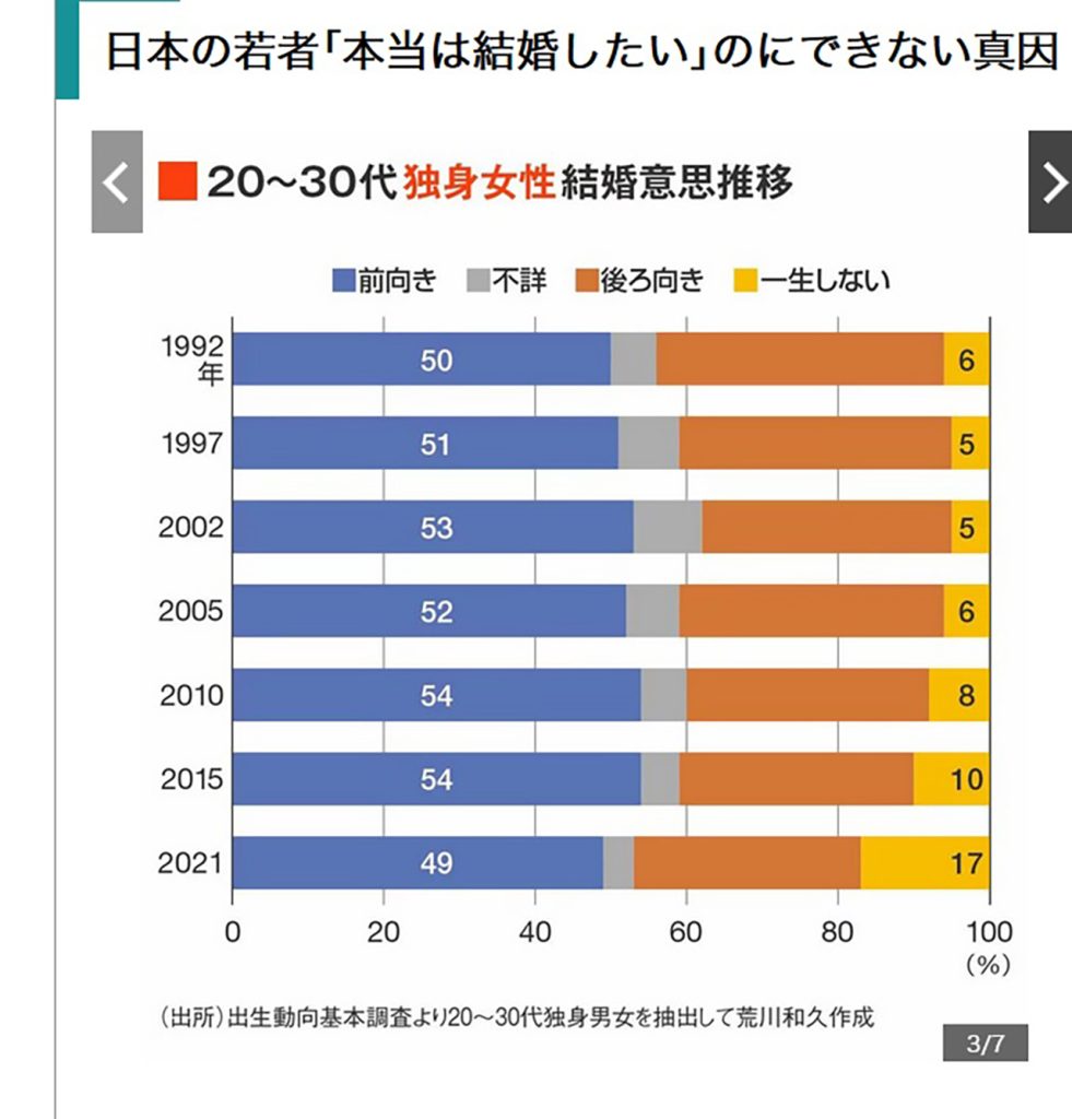 私自身、結婚を推奨も否定もしませんが、少なくとも結婚したい人には結婚できる環境があるべきだと思うし、結婚したいのにできないという不本意未婚が5割にもなる現状は由々しき問題と考えます。