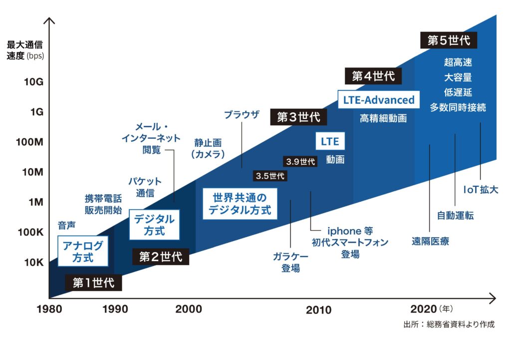 4Gの特長は、通信速度が最大1Gbpsと3Gよりさらに高速化している点です。4Gの登場によって、動画配信サービスの視聴やスマートフォンゲーム、音楽再生など、大容量のコンテンツを手軽に楽しめるようになりました。 - 5G(2020年~)
