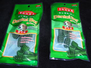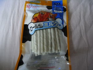 *久々の更新になってしましました(汗)犬用のガムです口臭にも効くみたいです、おいしいみたいでご飯よりこっちのほうが欲しがります一袋398円です