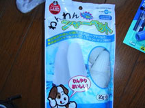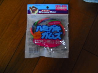 *犬用の歯磨きガムです、500円ぐらいだったと思いますせっかく買ったのですが気に食わないらしく一回も遊んでくれません(泣