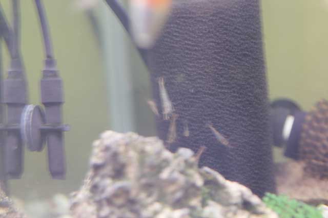 エビが循環フィルターの前に大量に居ます・・・微生物でも食べているのかな? 不思議な光景です..