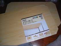 鉄の棚が網状になっているんで、小さいものだと落っこちてきてしまうんで、木のボード購入してきました999円です