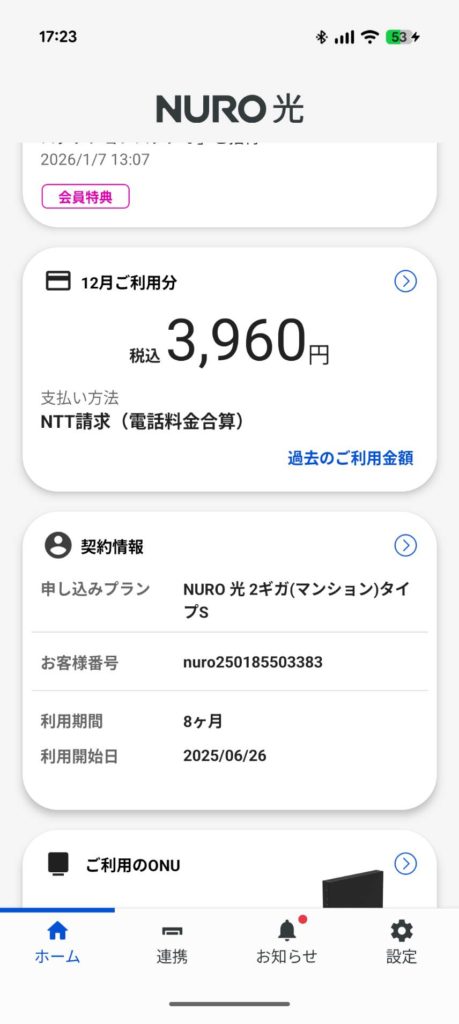 ホントドコモ光より2000円安くてスピード倍で素晴らしいニューロですね☆彡
