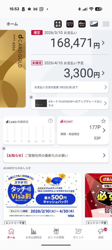 ドコモカード今月はちょっと使いすぎたかな(;^_^A