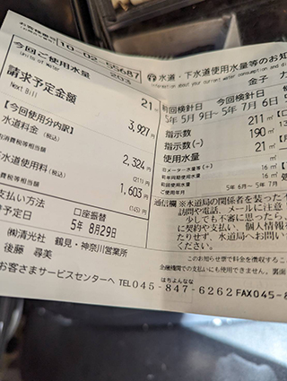 水道代は変わらず平和ですよね安いし安全な横浜です☆