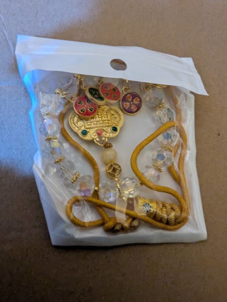 付けると他の人との区別が楽なのと、何より音がガラガラ音していたのが