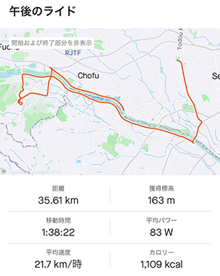 片道約15キロ、ソロだったのでペースは早めでしたが