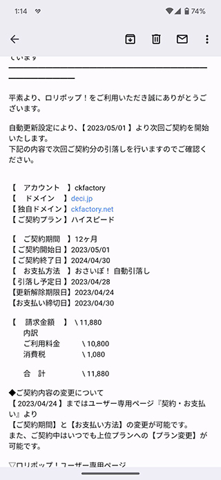 年に一回のサーバー代ですね昔に比べたら大分安くなったなと思う今日この頃でございます☆彡