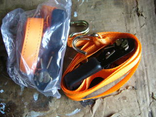 *タイダウンベルトです、何かしっかり固定したい時に 便利かなと思い購入しました、 ガッチャ式なのでテンションも